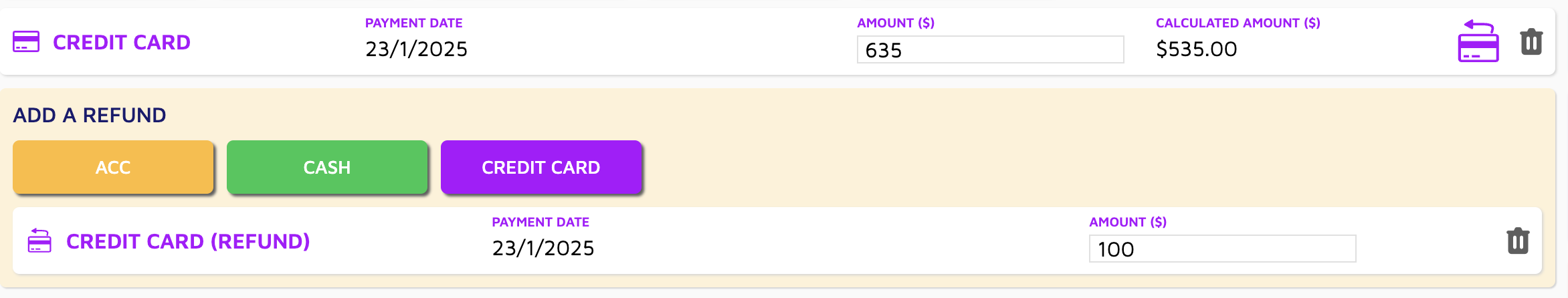 • You can now apply Refunds on the Operations page, allowing operators to record any refunded payments made back to the customer. This can be enabled for any payment type and allows for flexibility in how your refund. For example;
